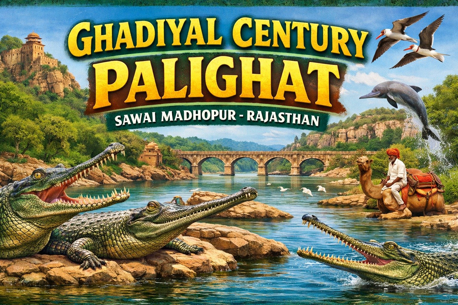 Ghadiyal Century Palighat in Sawai Madhopur is a beautiful wildlife sanctuary known for rare gharials and crocodiles along the Chambal River.